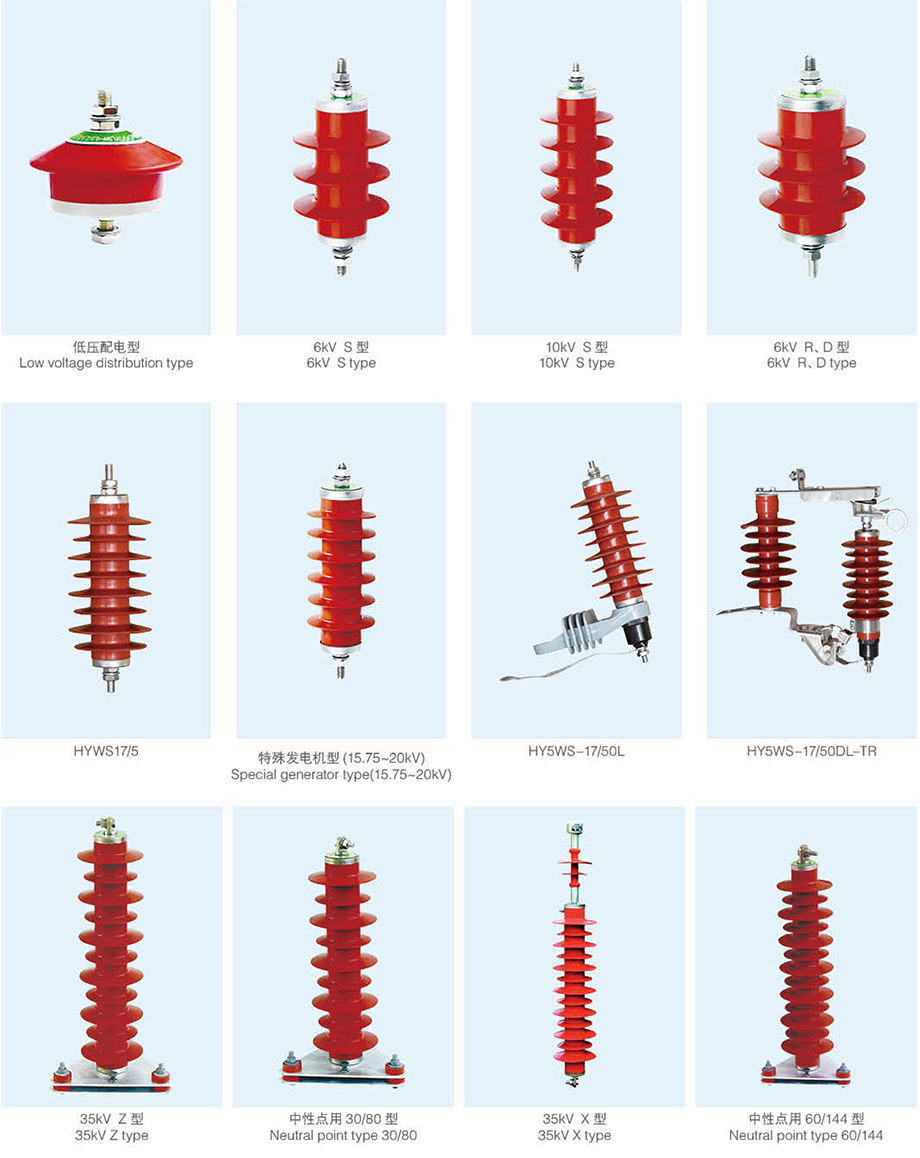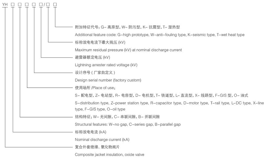 概述 YH 復(fù)合外套氧化鋅避雷器是電力系統(tǒng)各類電氣設(shè)備 ( 變壓器、電抗器、電容器、發(fā)電機(jī)、電動(dòng)機(jī)、PT、CT、斷路器、接觸器等 ) 絕緣配合的基礎(chǔ),由避雷器的保護(hù)性能確定電力系統(tǒng)所有電氣設(shè)備的內(nèi)外絕緣指標(biāo) ( 短時(shí)工頻耐壓、雷電沖擊耐壓和操作沖擊耐壓等 )。